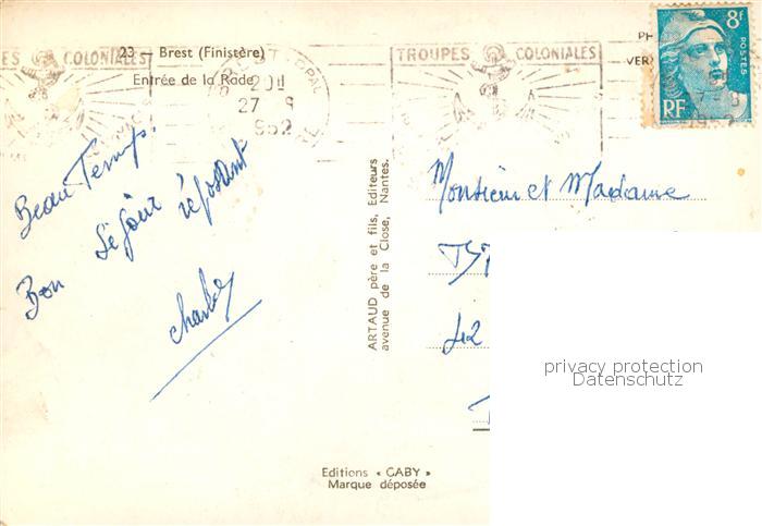 13834156 Brest 29 Entrée de la rade postalisch gelaufen Erhaltung siehe scans [FriedD77] carte postale Frie Katcode 11170029129019