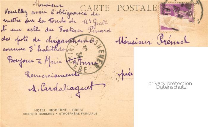 13782846 Brest 29 Hotel Moderne – Hotel des Postes postalisch gelaufen Erhaltung siehe scans [LiesaD40] carte postale Lies Katcode 11170029129019