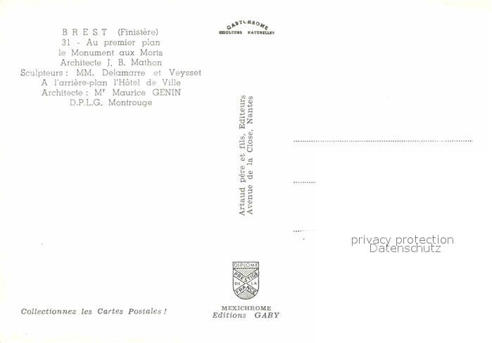 12710860 Brest 29 Monument aux Morts Hotel de Ville KatCode 11170029129019