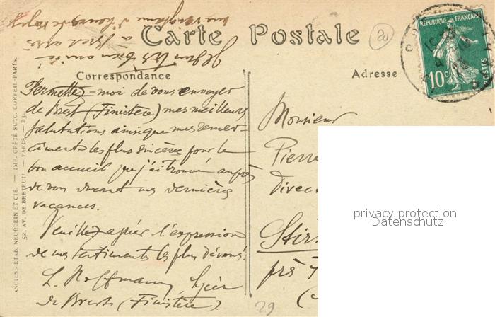 13498288 carte postale Brest 29 Perspective du Cours Dajot Monument Statue postalisch gelaufen Erhaltung siehe scans [FriedD77] KatCode: 11170029129019