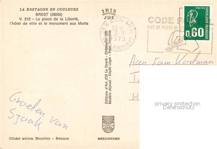13235697 carte postale Brest 29 Place de la Liberté Hotel de Ville Monument aux Morts vue aérienne postalisch gelaufen Erhaltung siehe scans [FriedD77] KatCode: 11170029129019