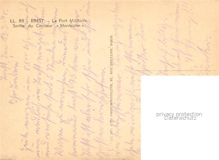 12968856 Brest 29 Port Militaire Sortie du Croiseur Montcalm postalisch nicht gelaufen Erhaltung siehe scans [NatalD47] KatCode: 11170029129019