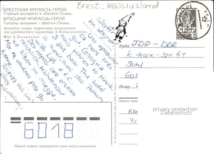 old postcard Brest Weissrussland postalisch gelaufen Ganzsache (eingedruckte Briefmarke) Erhaltung siehe scans