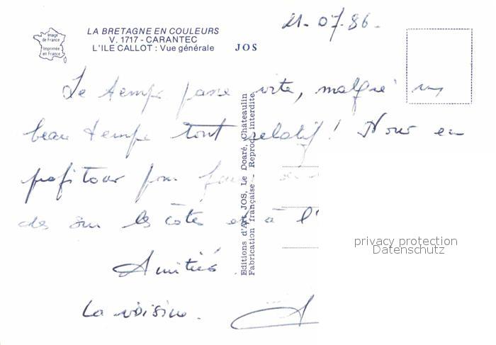 12895178 Bretagne Region Fliegeraufnahme L’Ile Callot postalisch nicht gelaufen Erhaltung siehe scans [AndreD76] KatCode: 11170035335238