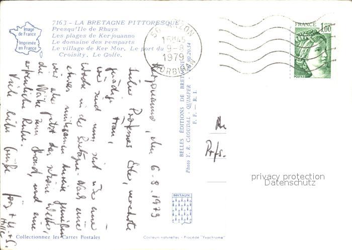 12065772 carte postale Bretagne Region Ile de Rhuys Les plages de Kerjouanno Domaine des remparts Village de Ker Mor Port du Croisity Golf postalisch gelaufen KatCode: 11170035335238
