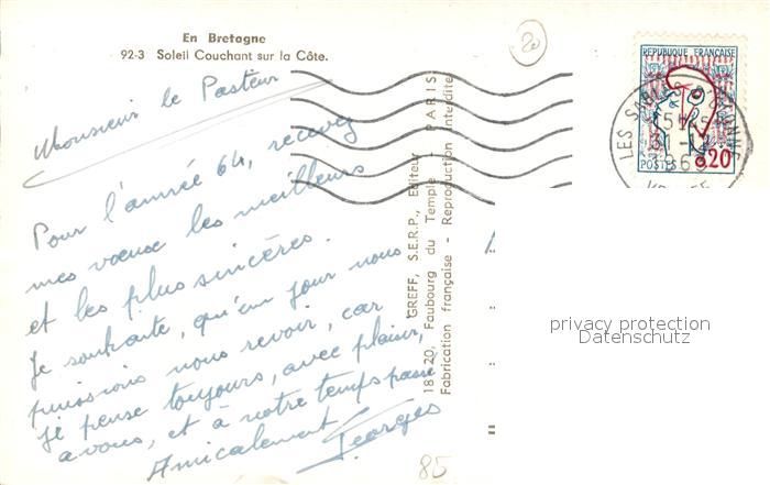 13485777 carte postale Bretagne Region Soleil Couchant sur la Cote postalisch gelaufen Erhaltung siehe scans [WerneD78] KatCode: 11170035335238
