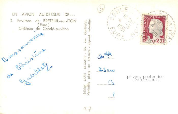 13499678 carte postale Breteuil sur Iton Chateau de Condé sur Iton vue aérienne postalisch gelaufen Erhaltung siehe scans [FriedD77] KatCode: 11170027327112