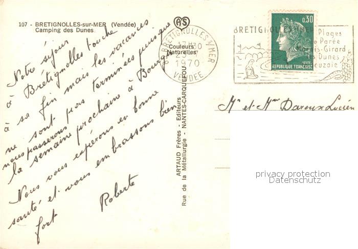 13637732 Bretignolles-sur-Mer Camping des Dunes Plage Kiosque postalisch gelaufen Erhaltung siehe scans [FriedD77] carte postale Frie Katcode 11170085385035