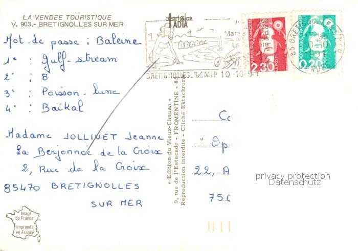 13223963 carte postale Bretignolles-sur-Mer Fliegeraufnahme Strand postalisch gelaufen Erhaltung siehe scans [KathaD81] KatCode: 11170085385035