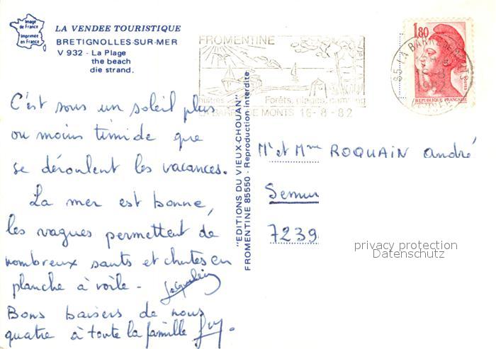 carte postale Bretignolles-sur-Mer La plage Windsurfing postalisch gelaufen Erhaltung siehe scans [FriedD77]