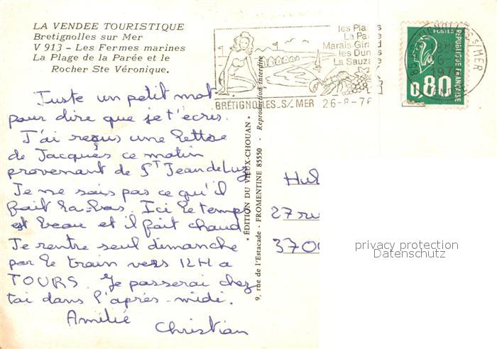 13609939 Bretignolles-sur-Mer Les Fermes Marines Plage de la Parée et Rocher Sainte Véronique KatCode 11170085385035