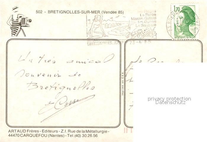 13253890 carte postale Bretignolles-sur-Mer Strand Fliegeraufnahme Chronik Abendstimmung postalisch gelaufen Erhaltung siehe scans [KathaD81] KatCode: 11170085385035