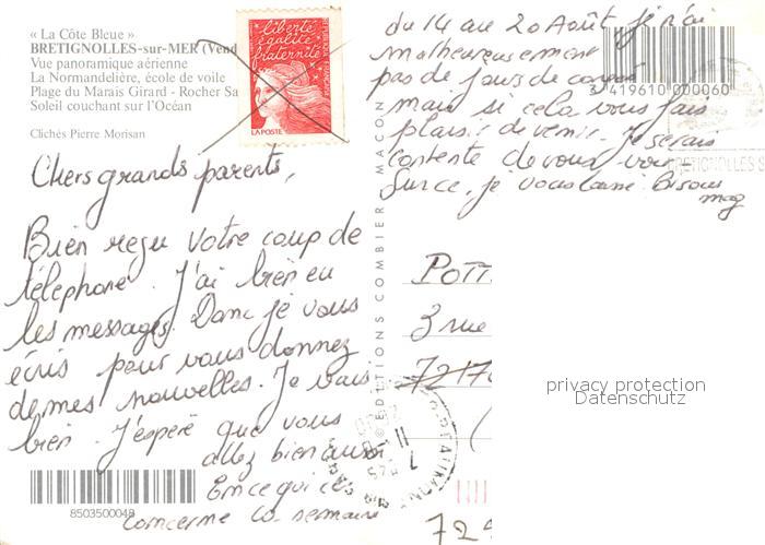 13663326 Bretignolles-sur-Mer Vue panoramique aerienne La Normandeliere ecole de voile Plage du Marais Girard Rocher Sa Soleil couchant sur l’Ocean postalisch gelaufen Erhaltung siehe scans [WerneD78] carte postale Wern Katcode 11170085385035