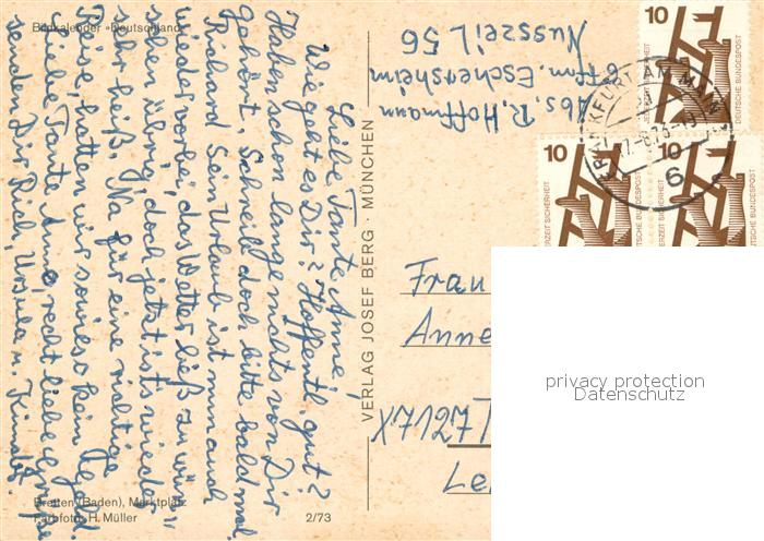 73707672 alte Postkarte Bretten Baden Hotel Krone Marktplatz Brunnen postalisch gelaufen Erhaltung siehe scans [WerneD78] KatCode: 11110008215007