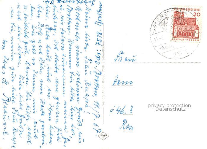 72927115 alte Postkarte Bretten Baden Marktplatz Brunnen postalisch gelaufen Erhaltung siehe scans [WerneD78] KatCode: 11110008215007