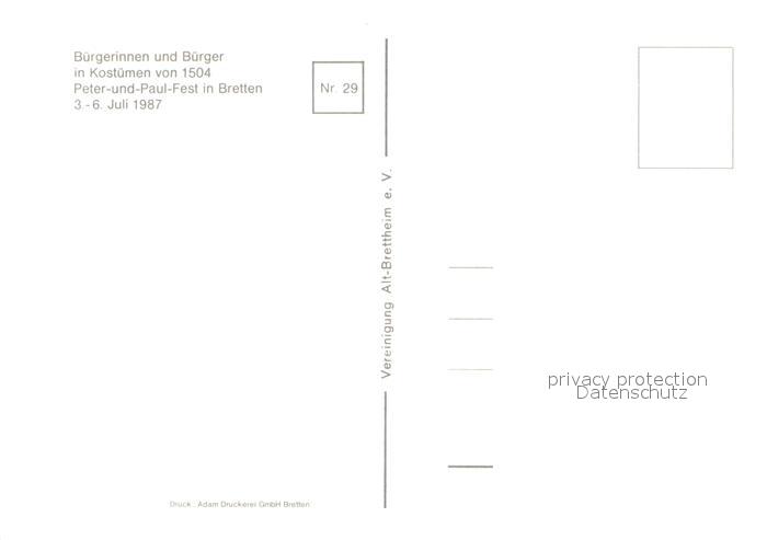 73626667 Bretten Baden Peter- und Paul-Fest postalisch nicht gelaufen Erhaltung siehe scans [LiesaD40] KatCode: 11110008215007