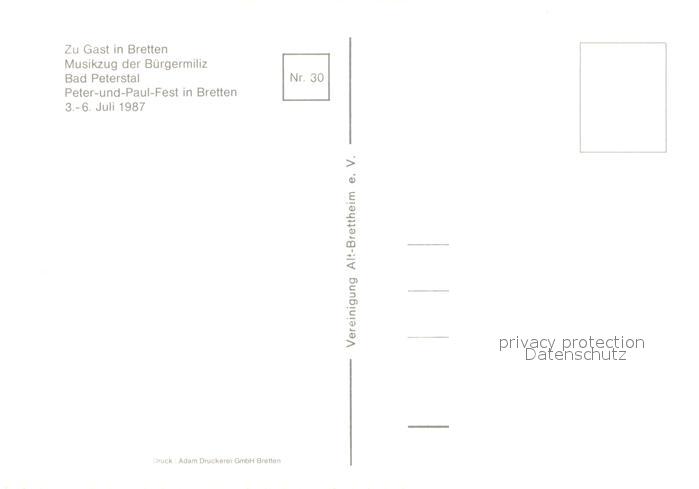 73626669 Bretten Baden Peter- und Paul-Fest Musikzug B?rgermiliz postalisch nicht gelaufen Erhaltung siehe scans [LiesaD40] KatCode: 11110008215007