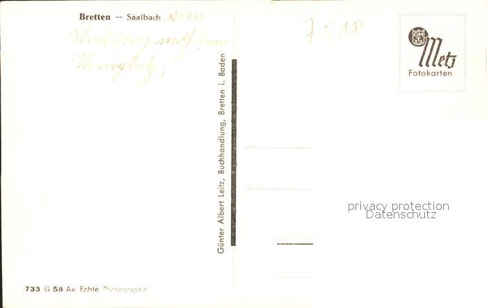 31714138 Bretten Baden Saalbach postalisch nicht gelaufen Erhaltung siehe scans KatCode: 11110008215007