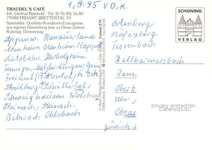 73323693 Brettental Traudel’s Cafe postalisch nicht gelaufen Erhaltung siehe scans [FriedD77] KatCode: 11110008316054