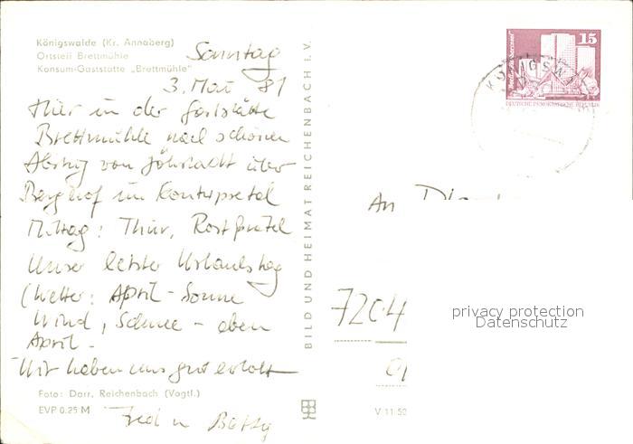 72066630 alte Postkarte Brettmuehle Koenigswalde Konsum Gaststaette im Winter postalisch gelaufen KatCode: 11110014171200