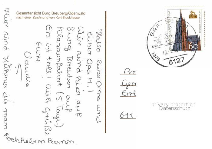 72825765 alte Postkarte Breuberg Burg Kuenstlerkarte von Kurt Stockhaus postalisch gelaufen Erhaltung siehe scans [LiesaD40] KatCode: 11110006437004