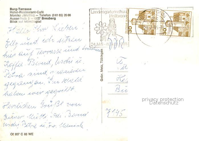 72987731 alte Postkarte Breuberg Burg-Terrasse postalisch gelaufen Erhaltung siehe scans [LiesaD40] KatCode: 11110006437004