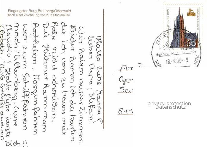 72825863 alte Postkarte Breuberg Eingangstor Burg Kuenstlerkarte Kurt Stockhause postalisch gelaufen Erhaltung siehe scans [LiesaD40] KatCode: 11110006437004