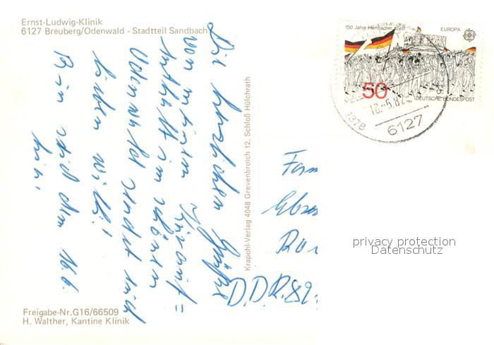 73714330 alte Postkarte Breuberg Ernst Ludwig Klinik OT Sandbach Fliegeraufnahme postalisch gelaufen Erhaltung siehe scans [WerneD78] KatCode: 11110006437004