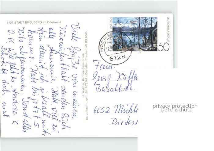 72038446 alte Postkarte Breuberg Fliegeraufnahme postalisch gelaufen Erhaltung siehe scans KatCode: 11110006437004