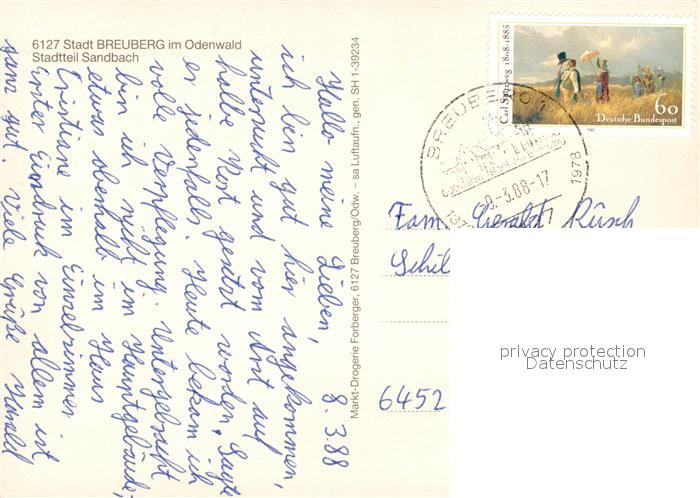 73056869 alte Postkarte Breuberg Fliegeraufnahme OT Sandbach postalisch gelaufen Erhaltung siehe scans [WerneD78] KatCode: 11110006437004