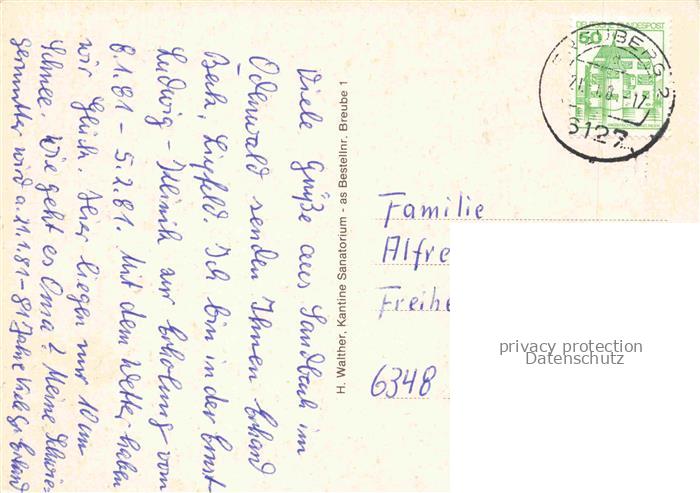 74043121 alte Postkarte Breuberg Odenwald Hessen OT Sandbach Ernst Ludwig Sanatorium Burg Breuberg OT Neustadt postalisch gelaufen Erhaltung siehe scans [WerneD78] KatCode: 11110006437004
