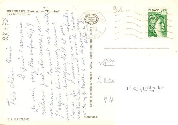 13513599 carte postale Breuillet Essonne Port Sud Les bords du lac postalisch gelaufen Erhaltung siehe scans [WerneD78] KatCode: 11170091191105