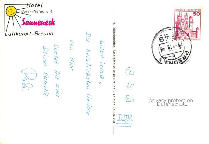 73010178 alte Postkarte Breuna Kirche und Hallebad Hotel Restaurant Sonneneck postalisch gelaufen Erhaltung siehe scans [WerneD78] KatCode: 11110006633004