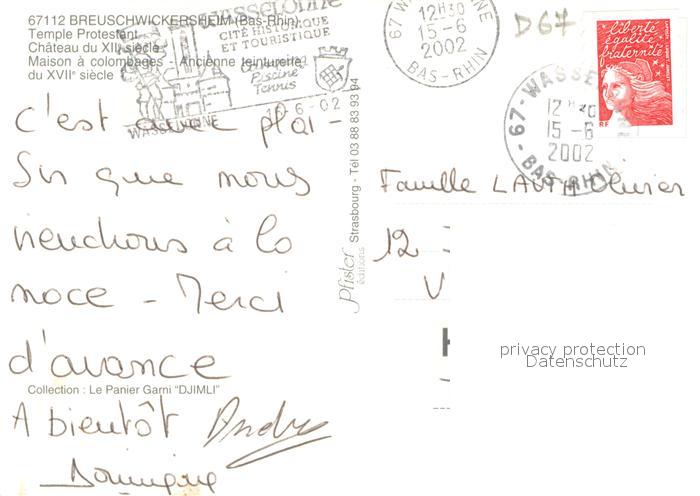 13617500 Breuschwickersheim Temple Protestant Chateau Maison a colombages Ancienne Teintureite postalisch gelaufen Erhaltung siehe scans [WerneD78] carte postale Wern Katcode 11170067667065