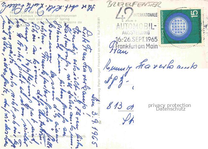74077249 alte Postkarte Brezelfenster VW Kaefer Frankfurt am Main postalisch gelaufen Erhaltung siehe scans [IrynaD87] KatCode: 22020000000900