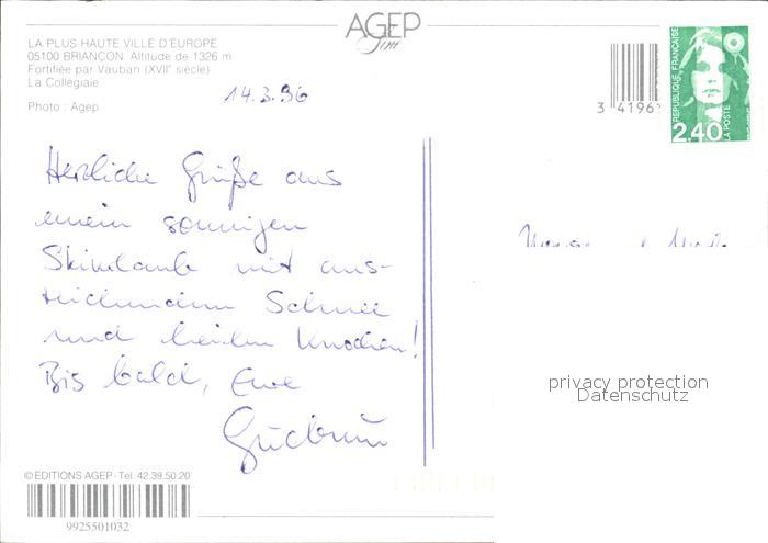 12433246 carte postale Briancon La Collegiaie postalisch gelaufen Erhaltung siehe scans KatCode: 11170005105023