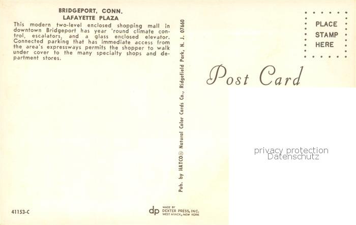 73764064 Bridgeport Connecticut Lafayette Plaza postalisch nicht gelaufen Erhaltung siehe scans [WerneD78] KatCode: 14140070000000