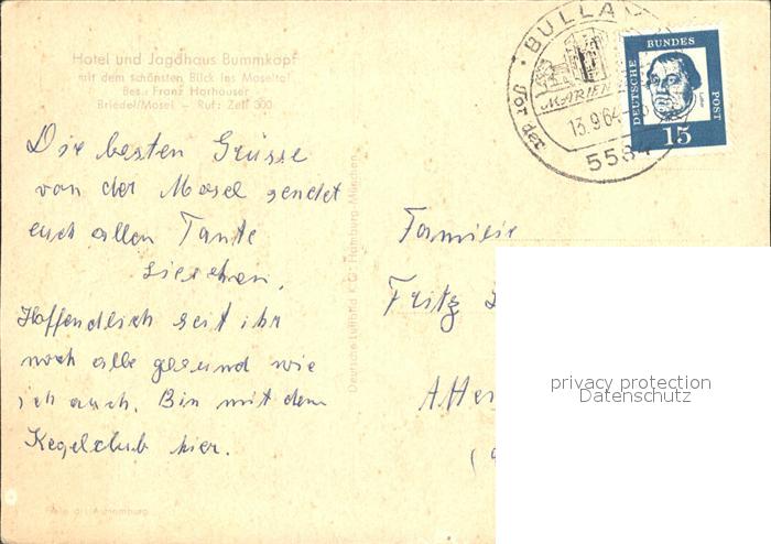 71972718 alte Postkarte Briedel Hotel Jagdhaus Bummkopf postalisch gelaufen Erhaltung siehe scans KatCode: 11110007135013