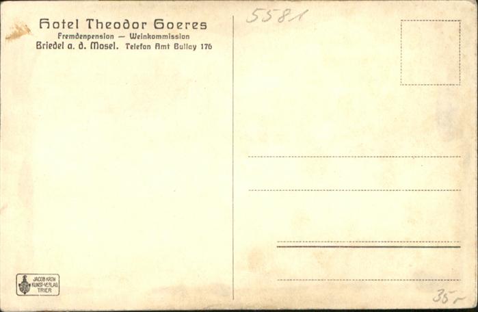 40931100 Briedel Hotel Theodor Goeres postalisch nicht gelaufen Alte Ansichtskarte Postkarte Katcode 11110007135013