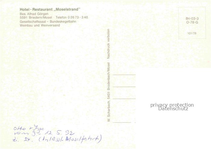74037844 Briedern Hotel Restaurant Moselstrand Moselpartie postalisch nicht gelaufen Erhaltung siehe scans [WerneD78] KatCode: 11110007135015
