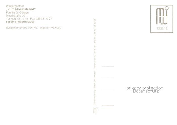 73643380 Briedern Winzergasthof Zum Moselstrand Gaststube postalisch nicht gelaufen Erhaltung siehe scans [WerneD78] KatCode: 11110007135015