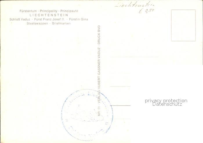 72372889 Briefmarken auf Postkarte Fürstentum Liechtenstein Schloss Vaduz KatCode 22080000000100