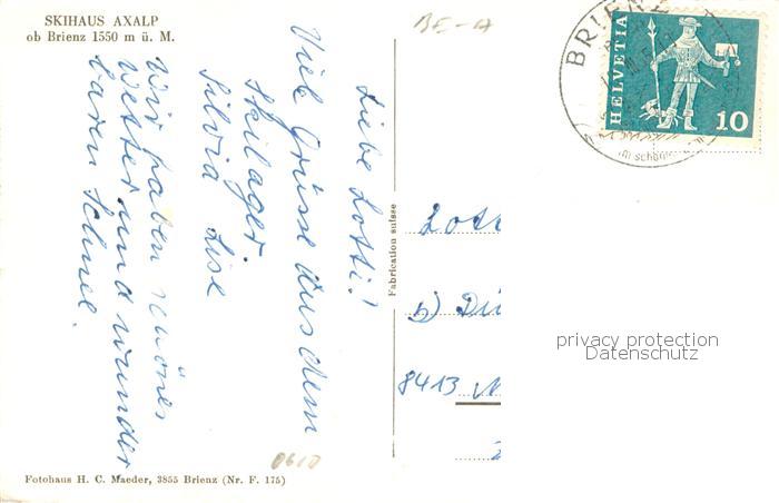 13760200 alte Postkarte Brienz BE Skihaus Axalp Winter postalisch gelaufen Erhaltung siehe scans [LiesaD40] KatCode: 11470060175240