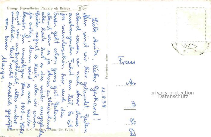 34144827 alte Postkarte Brienz Brienzersee BE Evangelisches Jugendheim Planalp postalisch gelaufen Erhaltung siehe scans [FriedD77] KatCode: 11470060175240