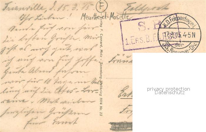 13748767 Briey 54 Italienisches Konsulat postalisch gelaufen Feldpostexpedition (Stempel) Erhaltung siehe scans [WerneD78] Feldpostexpedition (Stempel) carte postale Wern Katcode 11170054154099