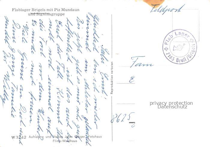 34144773 alte Postkarte Brigels Breil Surselva GR Flablager Blick gegen Piz Mundaun und Signinagruppe Winterpanorama postalisch gelaufen Feldpost – Stempel Erhaltung siehe scans [FriedD77] KatCode: 11470100355418