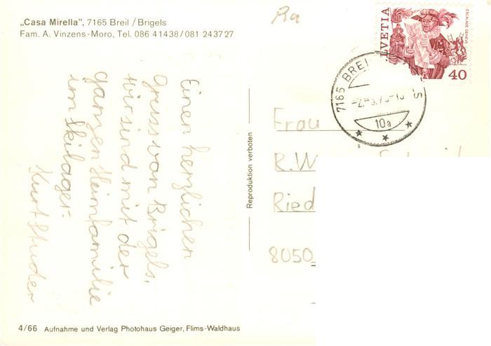 13887427 alte Postkarte Brigels GR Casa Mirella Panorama Gastraum Zimmer postalisch gelaufen Erhaltung siehe scans [WerneD78] KatCode: 11470100355418