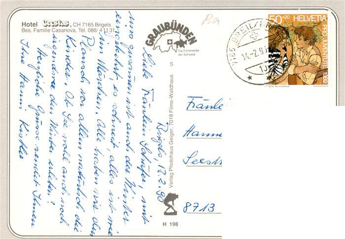 13887425 alte Postkarte Brigels GR Hotel Crestas Gastraeume postalisch gelaufen Erhaltung siehe scans [WerneD78] KatCode: 11470100355418