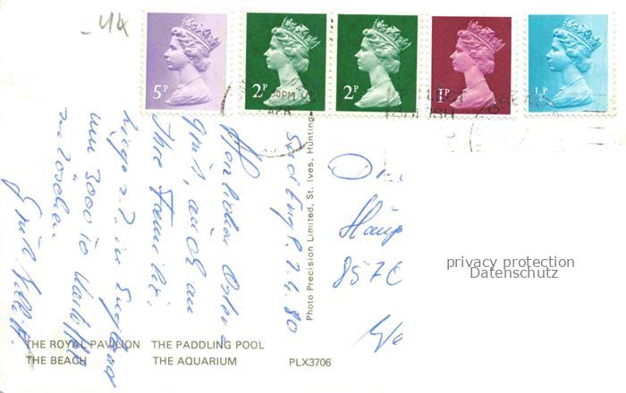74009578 old postcard BRIGHTON East Sussex UK The Royal Pavillon The Beach The Paddling Pool The Aquarium postalisch gelaufen Erhaltung siehe scans [WerneD78] KatCode: 11570