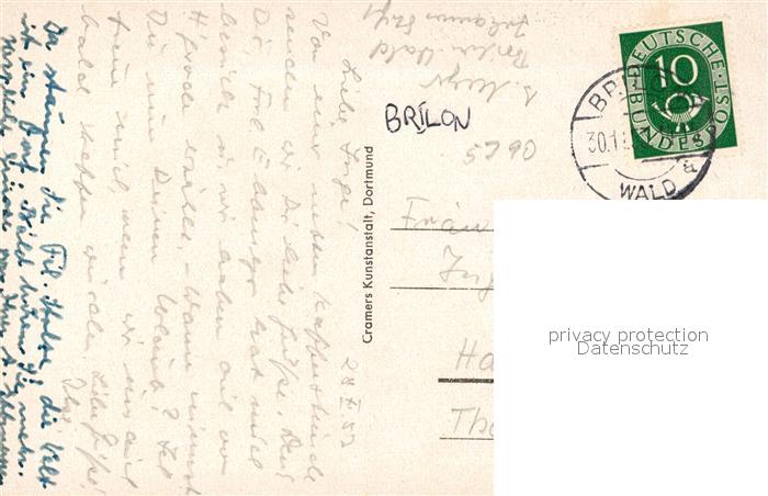 43350830 Brilon Hochsauerlandkreis NRW Blick vom Kreishaus postalisch gelaufen Erhaltung siehe scans [KathaD81] alte Postkarte Kath Katcode 11110005958012